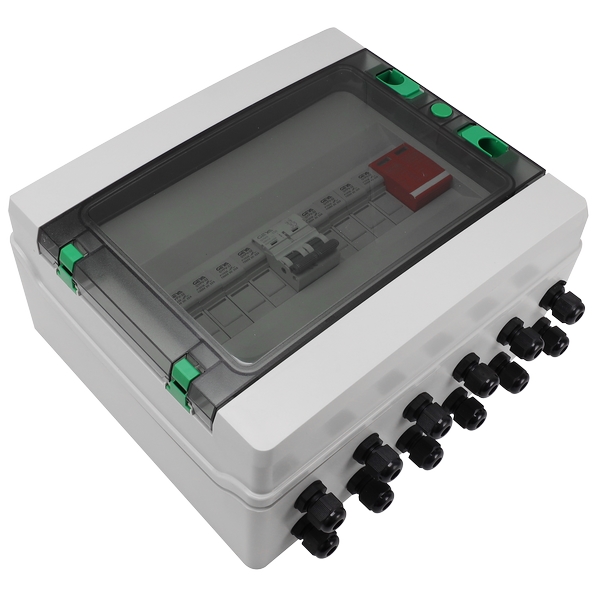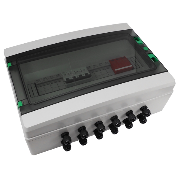 個輸出通道,單個MPPT逆變器)。箱體采用聚氯乙烯工程材料,具有阻燃、溫升、抗沖擊、