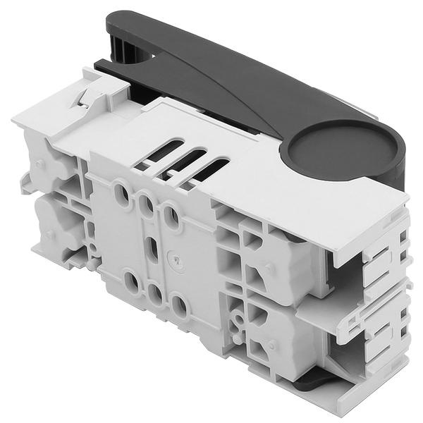 開關由底座、蓋子和接觸橋組成,保險絲安裝在蓋子里面,蓋子可以沿著支撐件以扇