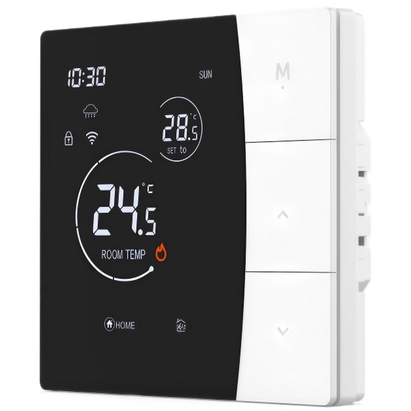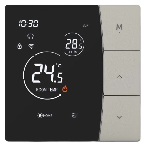 4、安裝兼容性強:寬電壓設計(AC90-240V),適用各類供電環境;3A(水暖)與 16A(電暖)雙負載配置,覆蓋主流供暖設備。 |